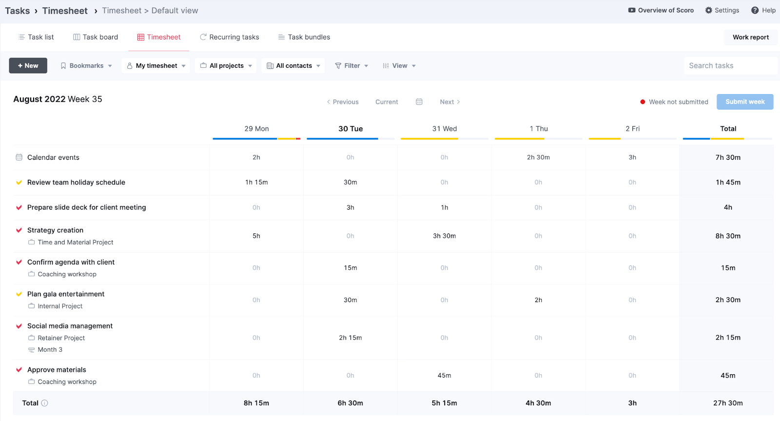 Given its rich feature set, it’s not surprising that Scoro prices start at $26 per user per month - considerably more expensive than the competition. The minimum you can add to your team is 5 people, so prices actually start at $130 per month. For just tracking time and doing timesheets, there are better and cheaper tools. However, if you want one tool to do it all, this just might be a great deal.