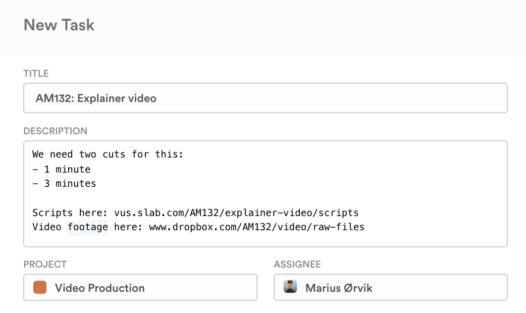 When you go to add a new task, you’ll also see that you now have the space to add a task description. While not mandatory, this option is great for tasks assigned to other people; it lets you add details, provide context and include useful links all in one place, so people don’t have to go hunting for them in different tools. Crucially, you can add as many details as you like without bogging down task titles and disrupting how tasks appear in your workspace.