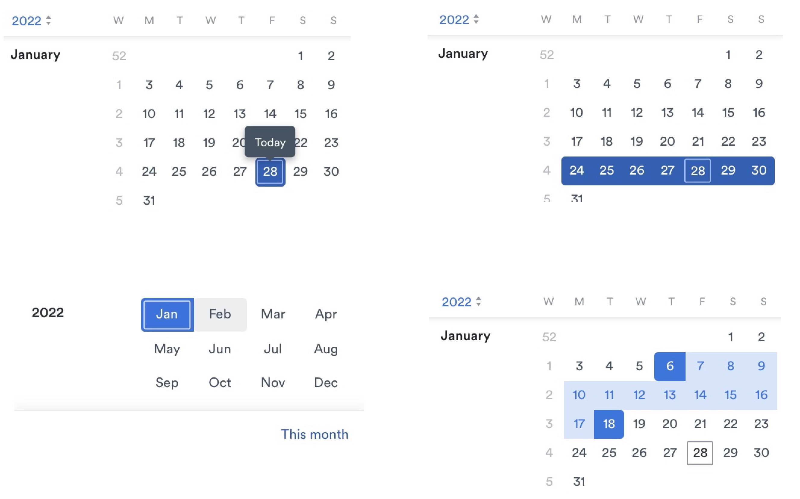- Enjoy a much slicker experience when selecting a day, week, or month time frame—with intuitive “jump to” shortcuts and way fewer clicks. It’s particularly fabulous when selecting custom date ranges for reports.