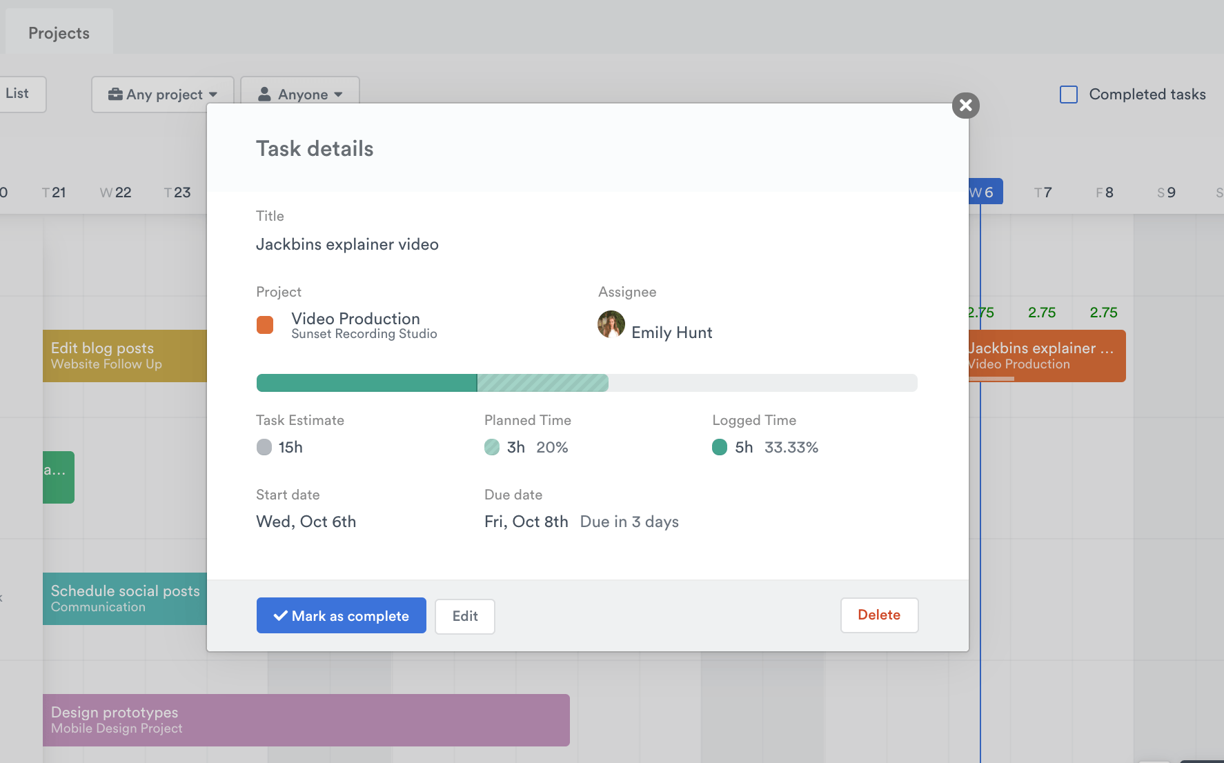 Timely’s whole shtick is it removes as much of the menial work that exists around what you were actually hired to do. It lets you know when you’re falling behind on a task deadline and prioritizes your backlog for you. With neat task progress bars that update as you log your work, it’s easy to scan the status of all work in progress.