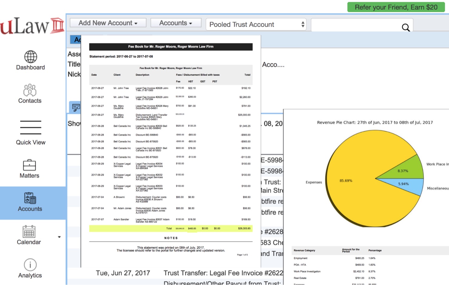 For small law firms or sole practitioners or paralegals, there’s uLaw Practice, a cloud-based practice management tool that incorporates legal accounting, general accounting, and trust accounting with robust analytics tools and practice management. It offers all the features necessary to ensure a positive client experience, to automate your practice, and to be fully compliant – from automated court forms to actionable analytics and simplified accounting. Ultimately, uLaw helps law firms become more productive, save time and stay in total control of their practice.