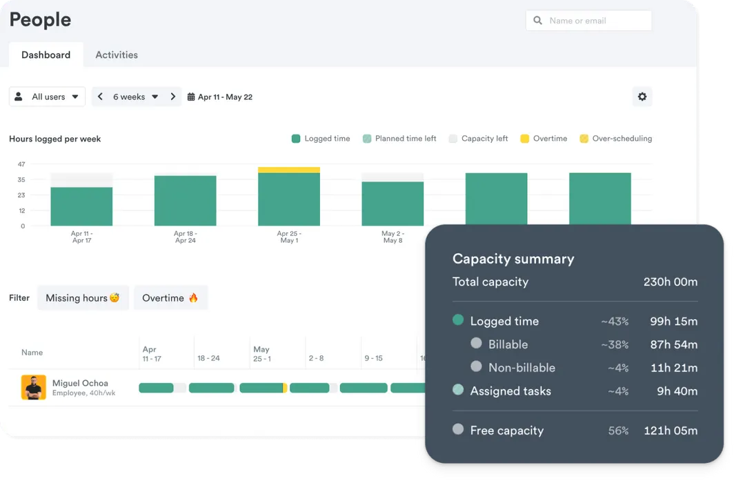 Designed to never interrupt your flow, Timely completely removes manual timers and note taking. You can even get its AI to draft timesheet entries for you. Project and team dashboards give you quick performance breakdowns, so you can follow task progress, team activity and the hours you put in each day without having to dig for anything. See how long you spend on different tasks, how much you’ve earned, where you get distracted and how you’re performing against your weekly capacity.