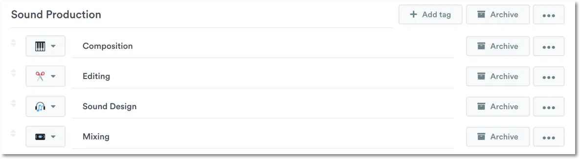 Tags are great organizational tools and can be used in many different ways: tracking different project phases, tasks, and/or sub-projects.