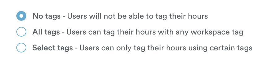 Upon selecting “All tags”, you still have the option to set required tags that employees must use when logging their hours. While developing this feature we added a neat little extra: whenever you add a new tag list to your global Tags settings page, it will automatically appear for projects where “All tags” is selected. Sub-tags from these lists — including those you add in future — will also appear automatically. More automation, less admin! 🦾