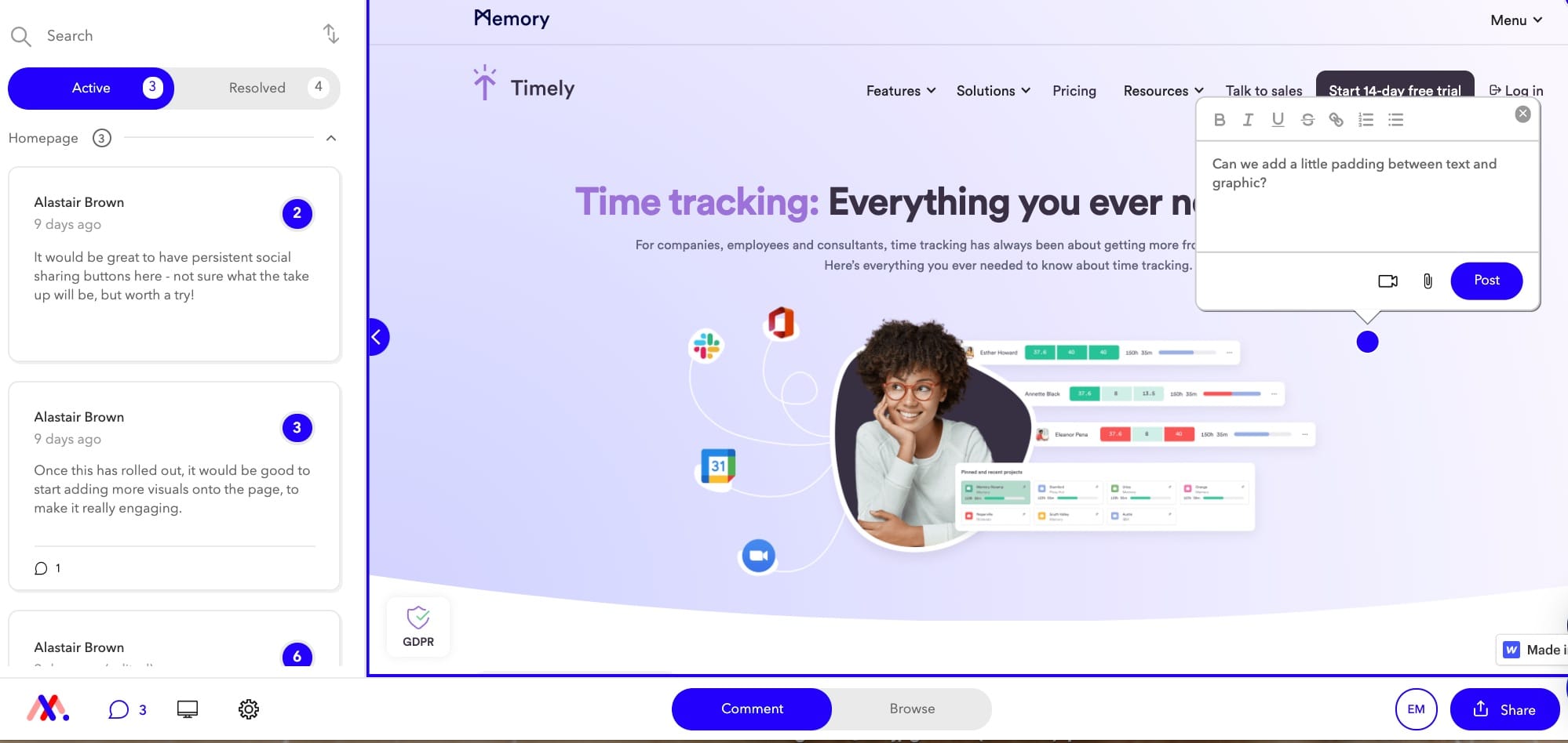 Depending on your role, you’ll likely use specific cloud-based tools for direct project communication. These almost all work using in-context comments, where you directly discuss a piece of work, but one on our list uses dashboards instead, since it mainly deals with communicating team management data. We’ve highlighted the most useful for common business tasks.
