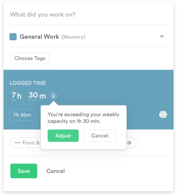 Having a real-time record of your daily logged hours and weekly capacity is extremely useful as an employee – particularly for preventing burnout. Many newly remote employees are finding it hard to set boundaries between work and personal time, losing sight of exactly how much they’re working. When you consider that even established remote workers tend to work longer hours than in-office ones, distributed teams need to take extra effort to keep work hours visible. In addition to showing employees where they are against their capacity, Timely also warns them whenever they log a timesheet entry beyond their weekly total.