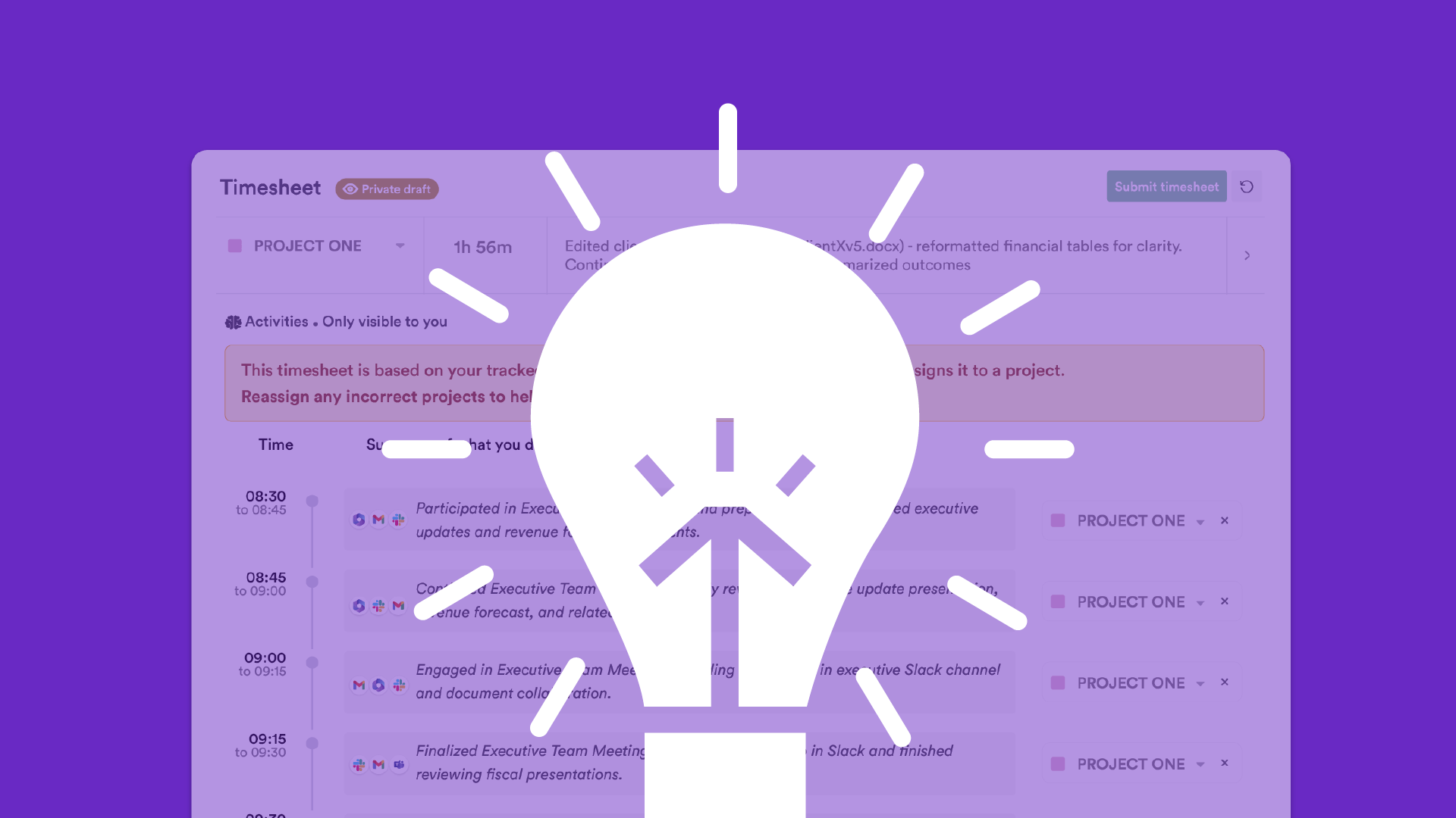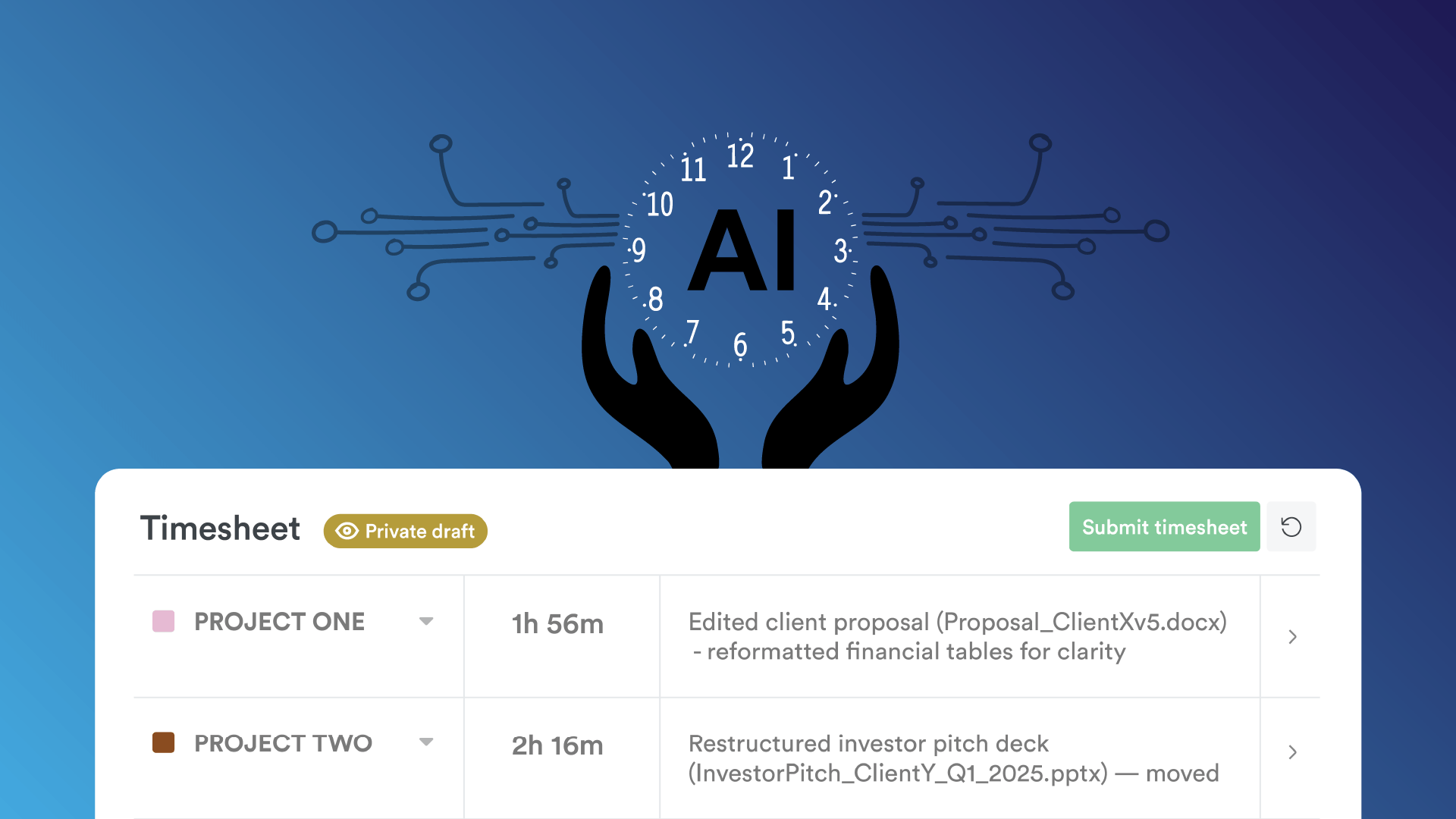 This shift removes guesswork and extra admin. No more chasing timesheets, reconciling mismatched project hours or desperately looking for lost billable hours.