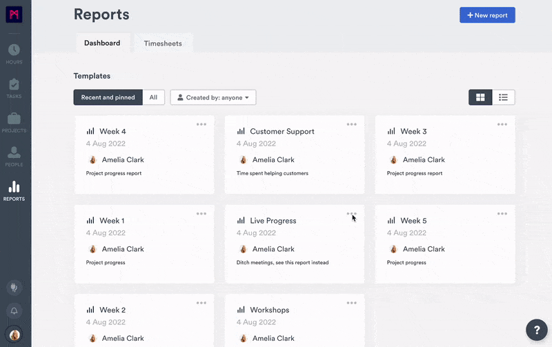 Some of our customers create dozens of useful reports for internal communication, as well as external reporting to clients. We noticed that many of you who use reports in Timely are often looking for the same templates on repeat. That’s why, as a bit of a timesaver, we’ve added the ability to pin and instantly access the reports you’ve come to rely on most.