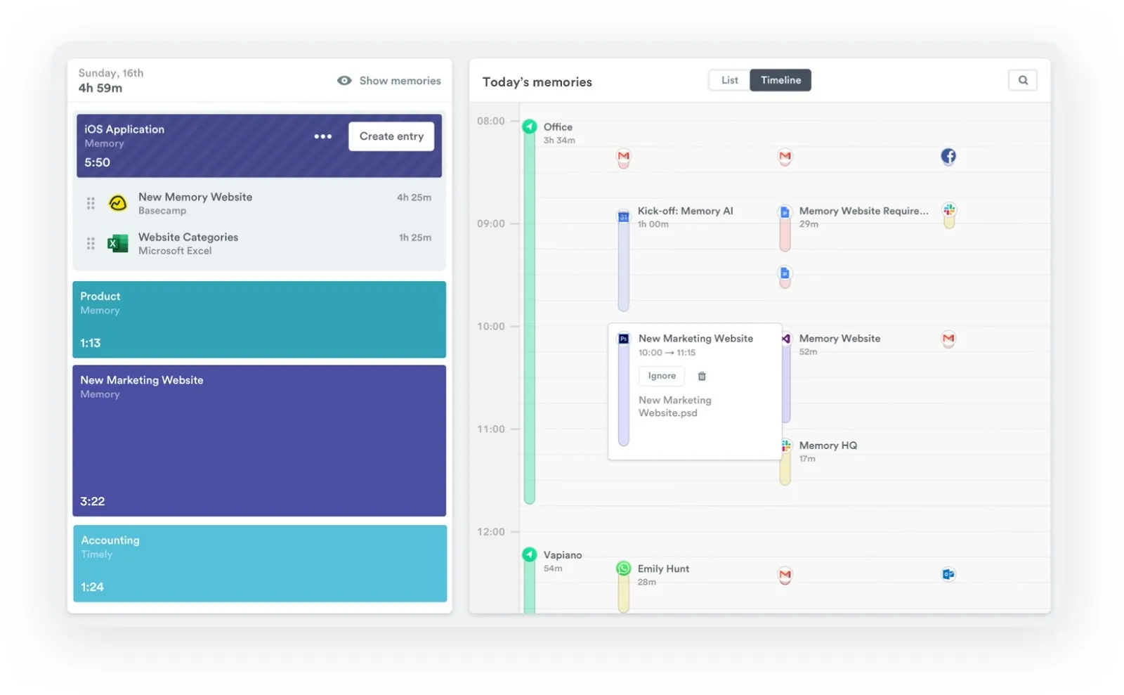 Timely allows each employee to automatically track the time they spend on different activities without taking any notes.