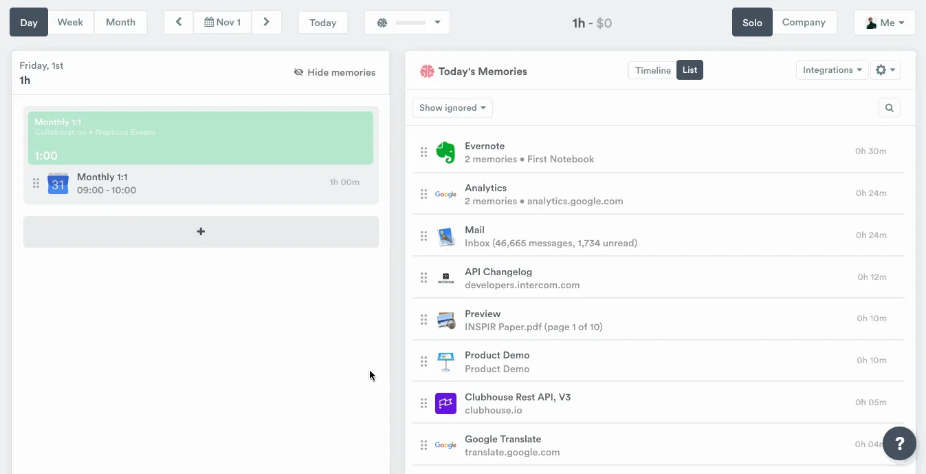 Most obviously, the automatic Memory app and AI features. You don’t have to waste energy and focus thinking about what you’ve worked on and for how long – Timely accurately remembers all your work for you in the background! Using AI, it can even link tracked work activities to projects for you.