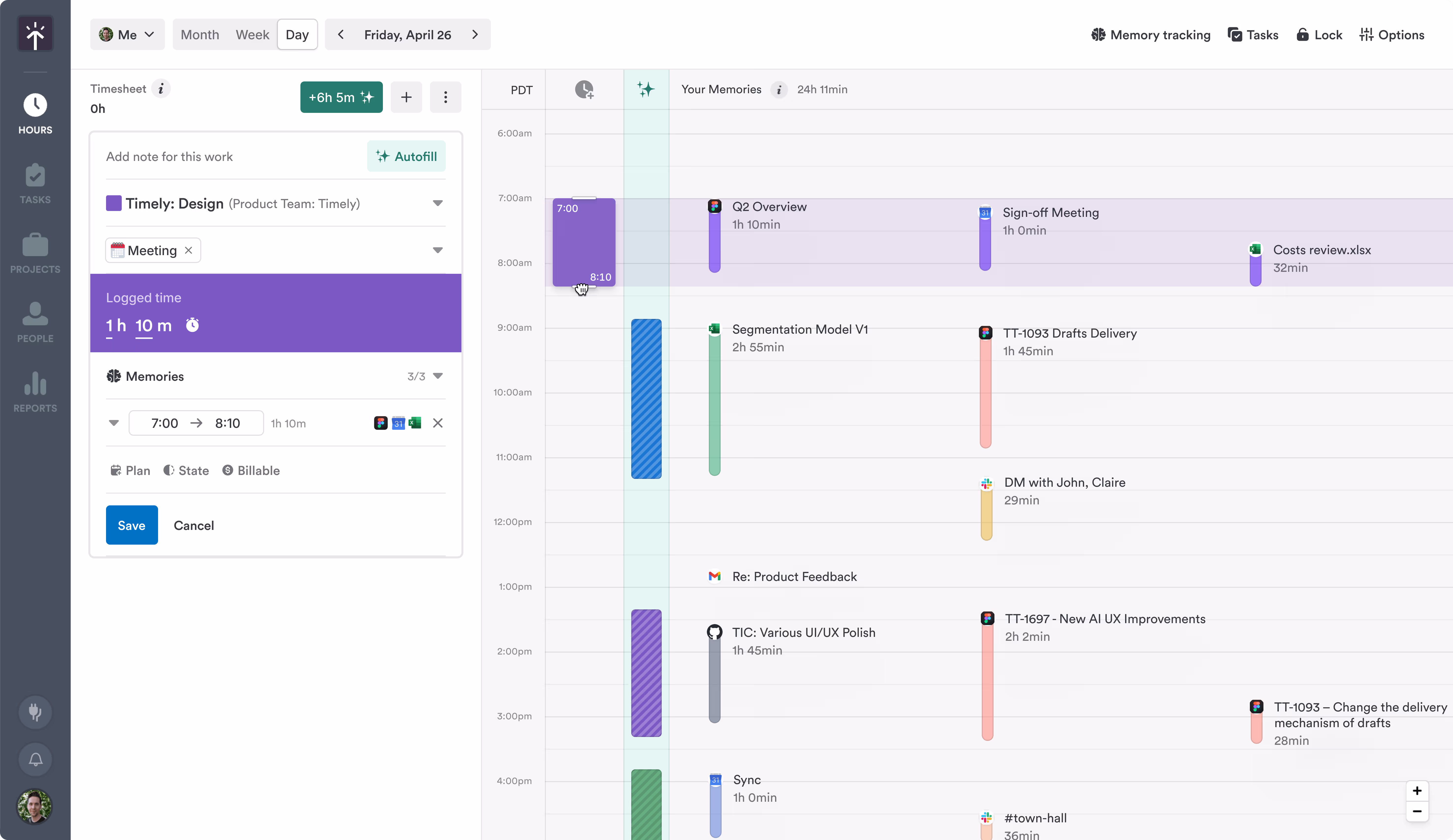 Tracking your hours is a breeze with Timely's Memory Tracker.