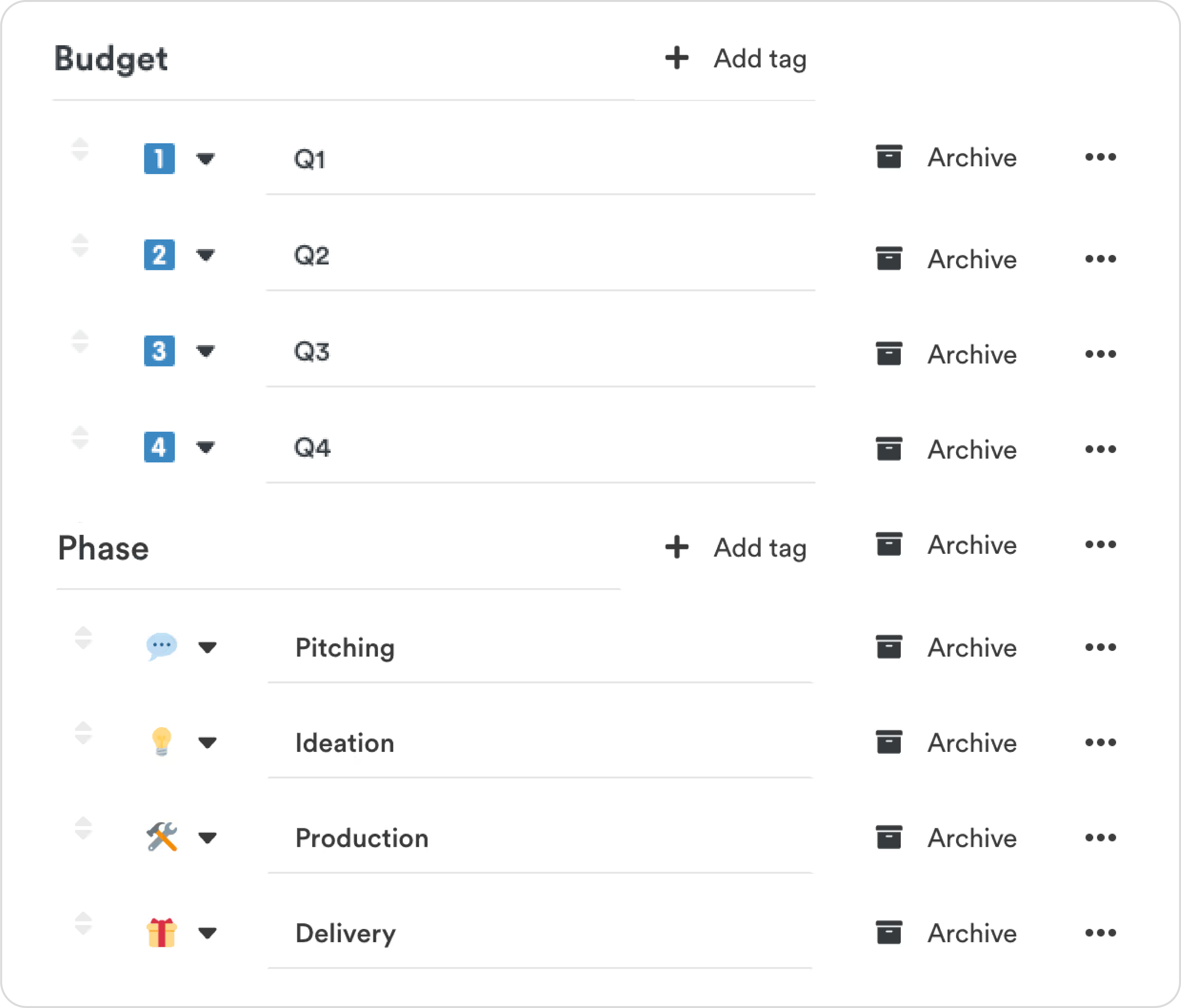 Effortlessly organize projects with customizable tags, giving you a clear overview of team activity.