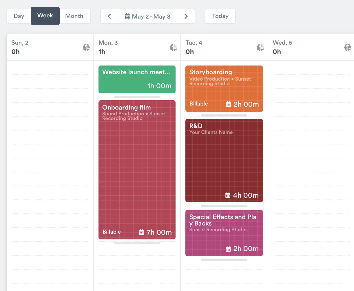 Planned time is ideal for time blocking your week ahead, or simply visualizing your schedule and availability. You can also report on your planned time, which is handy for comparing the time you allocate for different bits of work against the time they actually take you. While ideal for individuals, Manager- and Admin-level users can also use this feature to plan time for people on their team — just drag and drop planned entries to quickly copy them between multiple calendars.