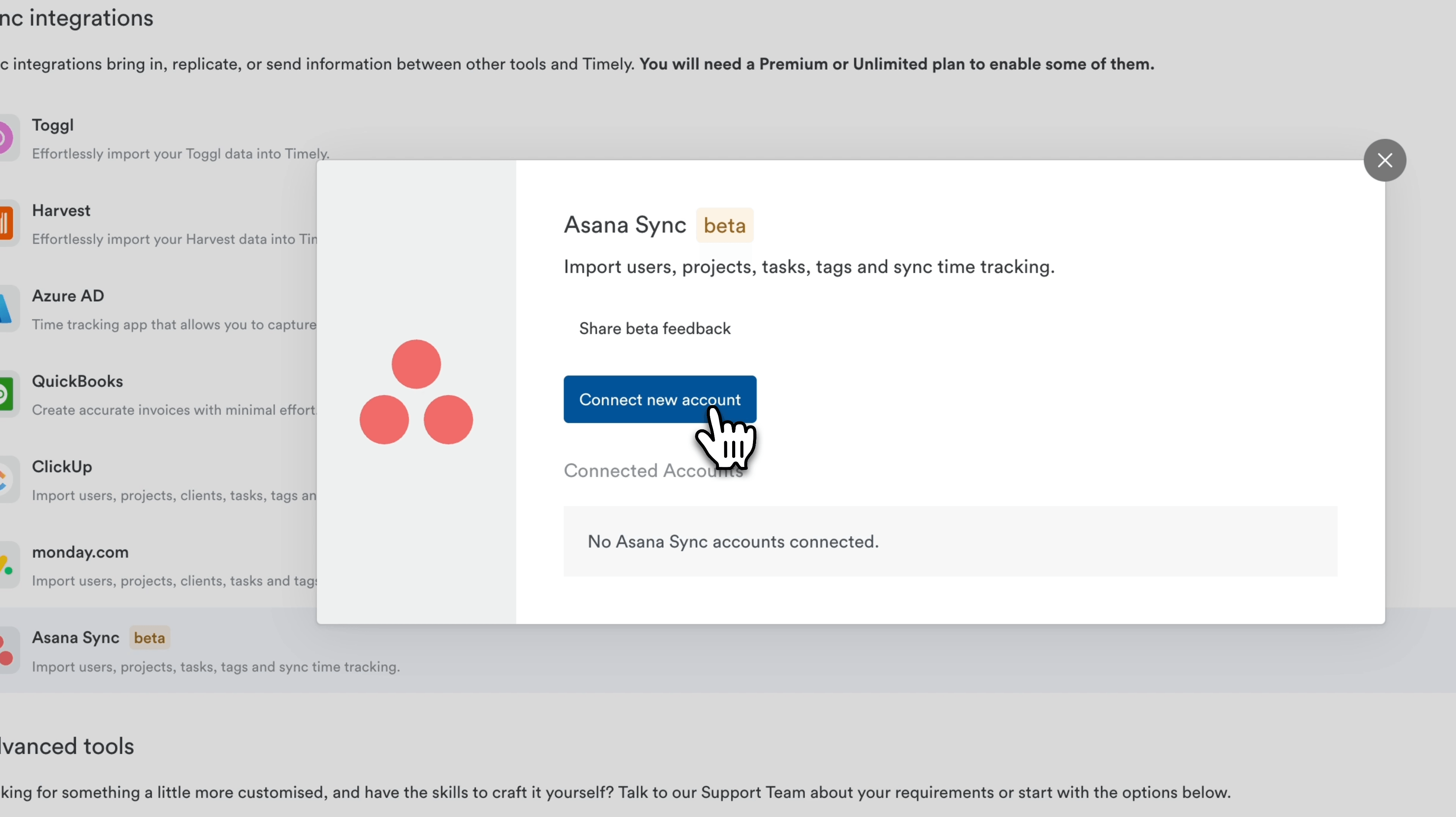 This integration is available for users on our Premium, Unlimited, and Unlimited + plans. You’ll need admin access in both Timely and Asana to set up the sync. Once connected, you’ll be prompted to select which of your Asana Projects you want to sync, ensuring that everything aligns perfectly.
