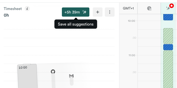 The Timesheet Assistant learns from your logging habits through Timely’s Memory feature, (If you’ve connected Memory or Timely time tracking integrations, and you’re using the next-gen Timeline then you’re all set to try it out). Once it identifies patterns, it suggests time entries that fit your workflow.