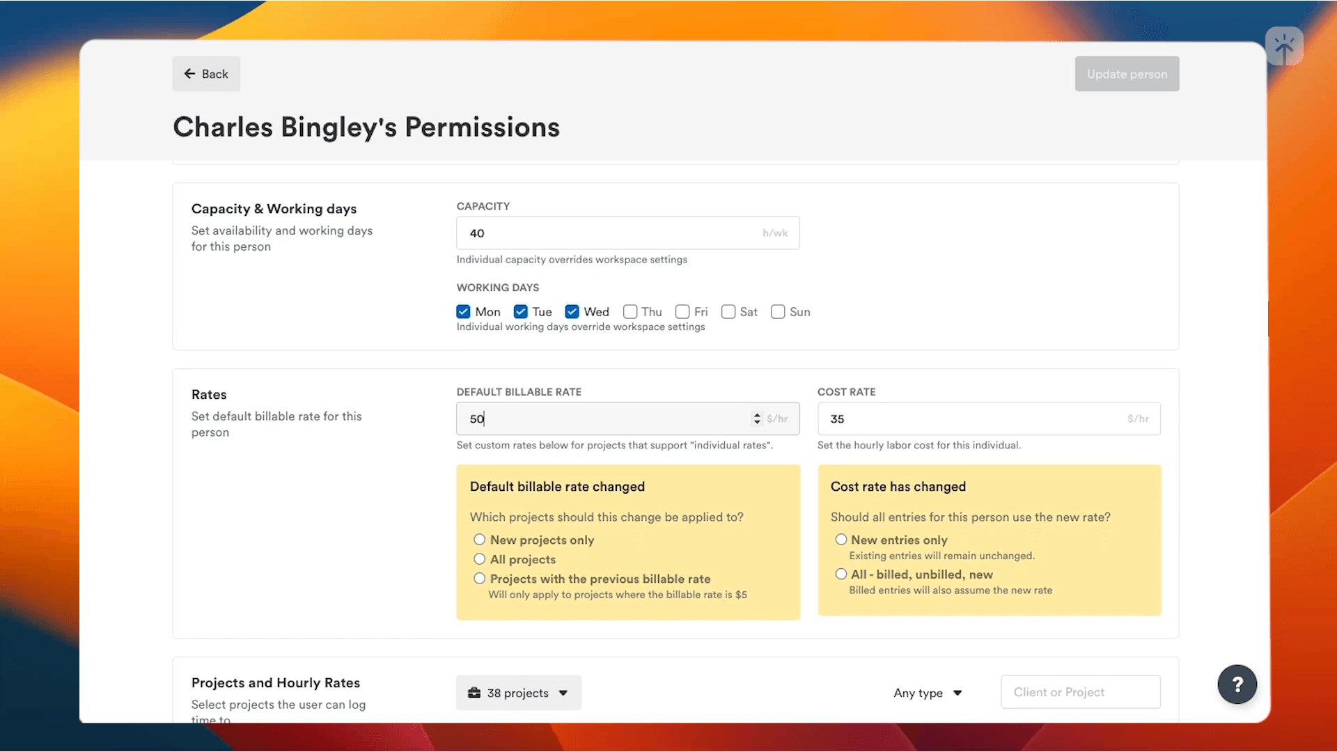 We’ve made billing and tracking profitability more straightforward by letting you adjust billable rates on a project-by-project basis. Set unique rates for each team member, tailored to every individual project.